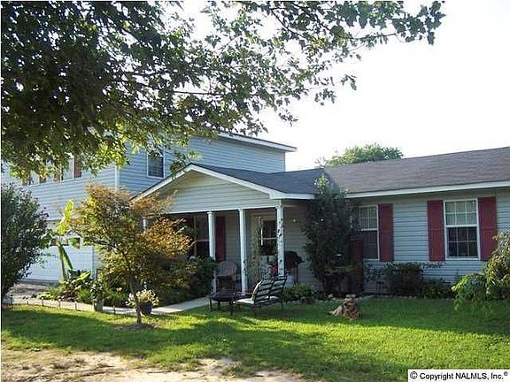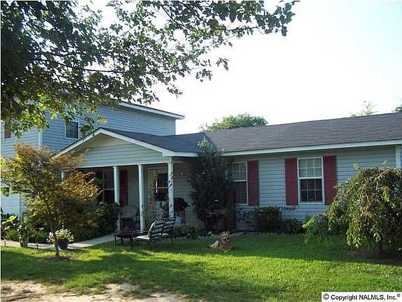 4 bedroom, 3 bath home with country setting. Convenient to Guntersville and Albertville. Vinyl siding is very low maintenance, nice front porch and garage. Master suite is secluded on 2nd floor with large master bath and big closet. Master bath has large Whirlpool tub and separate shower. Living space is open for living room, kitchen, and breakfast. Perfect for growing family.