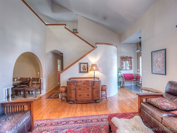 countertops, and pantry with newer stainless steel appliances. The large primary suite downstairs with walk-in closet and private bath with soaking tub and double sink. 1/2 bath and laundry room on the first floor as well. Three bedrooms up, one with ensuite bath that also feeds to the hall. 4th bedroom up c/b rec room/office. Outside is a true oasis with covered patio, inground heated pool, and outdoor kitchen area with built-in grill and burner. Roof is 5 years old. Fabulous location - close proximity to TCC West campus, expressways, turnpike, downtown Tulsa, Tulsa Hills, Turkey Mountain, Sand Springs, shopping, and restaurants. With a few personal touches this could be your dream home!