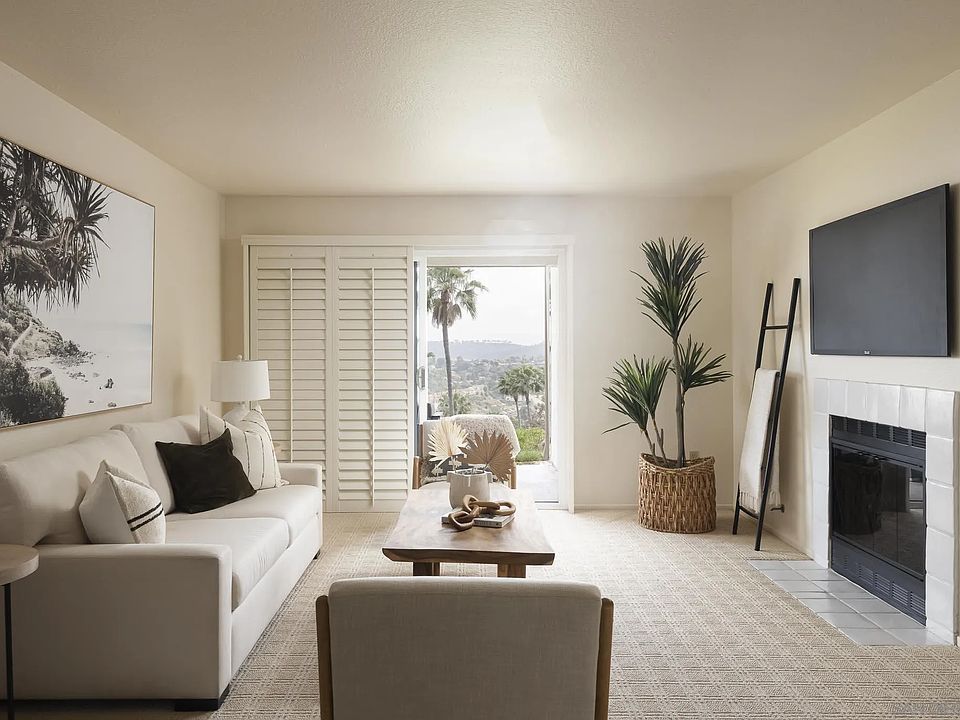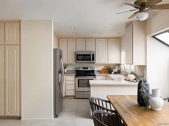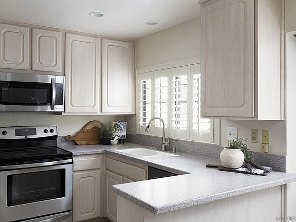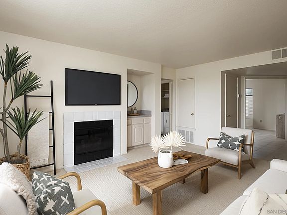 Enjoy stunning views from this beautiful condo in the highly desirable Sea Point Tennis Club in La Costa! Perfectly placed within the community, this ground floor end unit features panoramic hillside, golf course, and even some ocean/sunset views spanning out all the way to the coast. Spacious and roomy, this 2 bedroom, 2 bathroom south facing property invites in a ton of natural light. There are two primary bedrooms, each with their own nicely updated bathrooms and abundant storage, including three large patio storage closets. With a one car garage space, additional reserved parking space, and in-unit laundry, this unit seamlessly combines convenience and elegance.The HOA includes 4 tennis courts, 2 pools and 3 hot tubs all in a well maintained park like setting. Conveniently located near multiple shopping centers, walking trails, golf courses, top rated Encinitas schools and the beach.