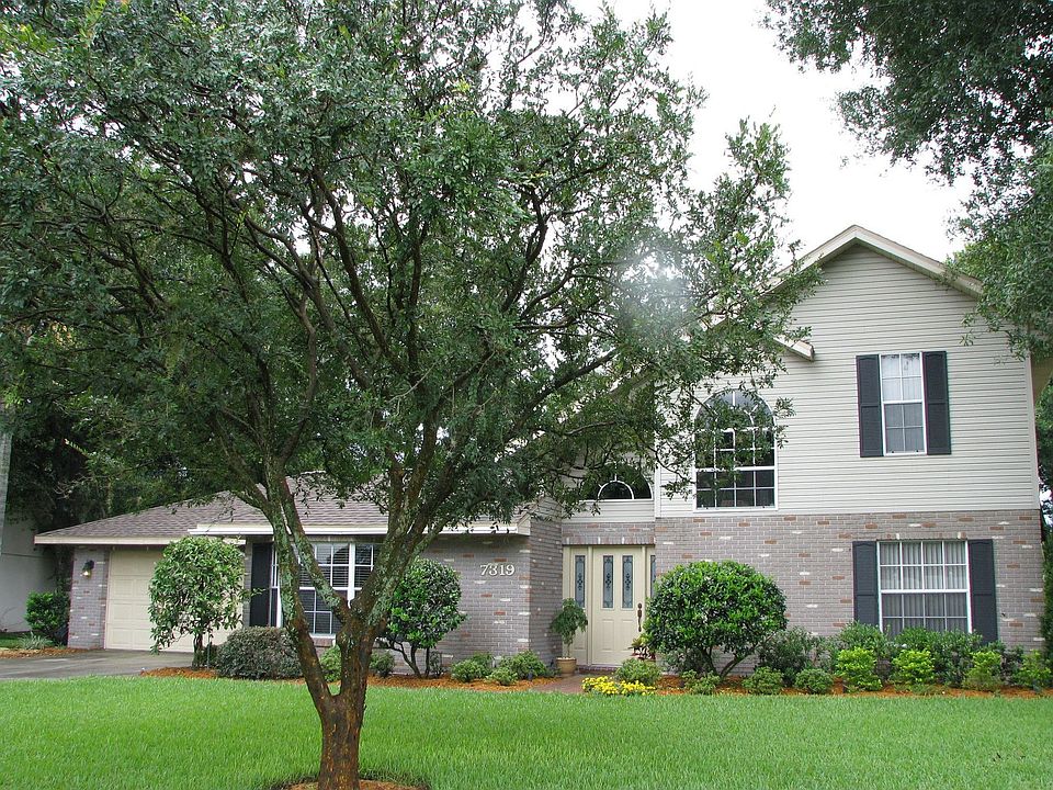 This home has more than curb appeal! It is in great shape inside and out and has a great floor plan with storage and extra rooms. It is a 3/2 with the master suite n the second floor with an outdoor deck overlooking the beautifully landscaped back yard and Koi pond. The square footage does not include the 10x18 foot Florida room or the aditional laundry room in the 16x18 foot garage addition. The owners have taken great care of this homr and it shows in condition and calm decorating colors throughout. The interior has been recently repainted. The interior laundry room is being used as an office and can be easily converted back. The back yard is fenced and has a block wall across the rear lot line. This is a 1/3 acre lot in a wonderful neighborhood across from the Huntington Hills Golf Course.