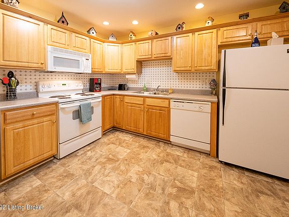 Updated, Open, Spacious, No Stairs, Private Fenced In Patio And Private Treed Back Yard! You'll love coming home to this 2 bedroom, 1.5 bath condo. Walk into a nice size living room with trey ceiling, crown molding and ceiling fan. The spacious, open eat-in kitchen overlooks the family room and includes upgraded appliances, wonderful wood cabinets, recessed lighting, large pantry, stainless steel sink and lots of counter space, cabinets and storage. All appliances, including the washer and dryer, to stay with the new owner! The Family Room offers lots of windows, a ceiling fan and access to the fenced in patio. The primary bedroom is large with access to the full bath, trey ceiling, crown molding and lots of natural light. To round out this great package, there is an additional good-sized bedroom, large full bath with linen closet and shower, laundry room, half bath combo and a large storage area ''up the pull down stairs''. Additional features and upgrades include: open floor plan, neutral colors throughout the home, lots of closets and storage, lots of windows and natural light and plantation blinds! The home also has a back patio with full privacy fence and an adorable front porch perfect for spring and summer evenings or chatting with your neighbors. The low monthly HOA fee covers trash pickup, snow removal, water, sewer, exterior maintenance, master insurance and maintenance of common areas. Minutes from the Gene Snyder, schools, shopping, restaurants and entertainment. Call today for your private showing.