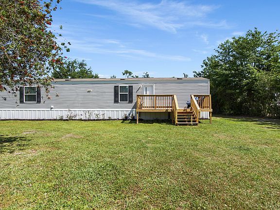 CURRENTLY UNDER CONTRACT, SELLER WILL CONSIDER BACKUP OFFERS-Situated on a half-acre parcel, this 4 year old, well maintained 2-bedroom, 2-bath mobile home is ready to welcome you. From the moment you arrive, a brand-new front deck invites you to unwind with a morning coffee or evening sunset—there's plenty of room for chairs and a small table or grill. Step inside to find durable vinyl-plank flooring flowing throughout the open living area—easy to maintain and stylish. The kitchen is spacious and leads to the indoor laundry room and also has a convenient breakfast bar that's perfect for casual meals or entertaining guests. With NO HOA, you can store your boat, RV, or add a pole barn. A 12 x 12 storage shed is already in place with a Red Snapper riding mower included in the sale. Ideal for a primary, second, or investment property.