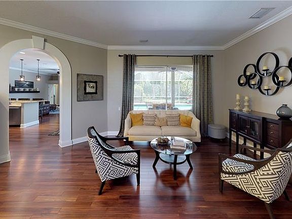 MOTIVATED SELLERS & JUST REDUCED! Stunning Move-In Ready 4/5 bedroom with 4 full baths completely updated including hardwood flooring and Plantation Shutters! Wonderful kitchen with a newer Kitchen Aid Appliance Package including a Gas Stove Top in the island as well as two wine coolers! Plus a Secret Hidden Walk-In Pantry, Gorgeous thick Sparkling Granite, 45 inch wood cabinetry, breakfast bar & aquarium glass window for the kitchen table pool view! Luxurious Master Suite with very nice large Master Bath. Bonus Rooms Galore include a very nice Office in the front of the home, a Den/Fla Room in the back plus the Upstairs is very versatile & can be a fifth bedroom as there is a full bathroom upstairs & large walk-in closet. Or it can be a Home Theater, Game Room, Sports Room, Study Room! Other Features of this home include: TWO NEW AC UNITS, Freshly Painted Exterior & Interior, 10 foot ceilings, Cathedral Ceilings in Bedrooms, Tall sliding glass doors, Full Three Car Garage, interior & exterior stone accents, plus paver drive, walks & pool deck! All interior doors, and all the hardware have been recently updated. Beautiful pool & lanai area accented with a rich wood paneled ceiling & lots of room for pool-side dining & lounging! Nice Laundry Room with a Super Cool Barn Door, Stainless Farmers Sink, & huge top of the line Samsung machines! The lot is quite large & is over a half an acre! Large front, side and back yard great for family play! Some ride their bikes to school from this neighborhood! NO CDD.
