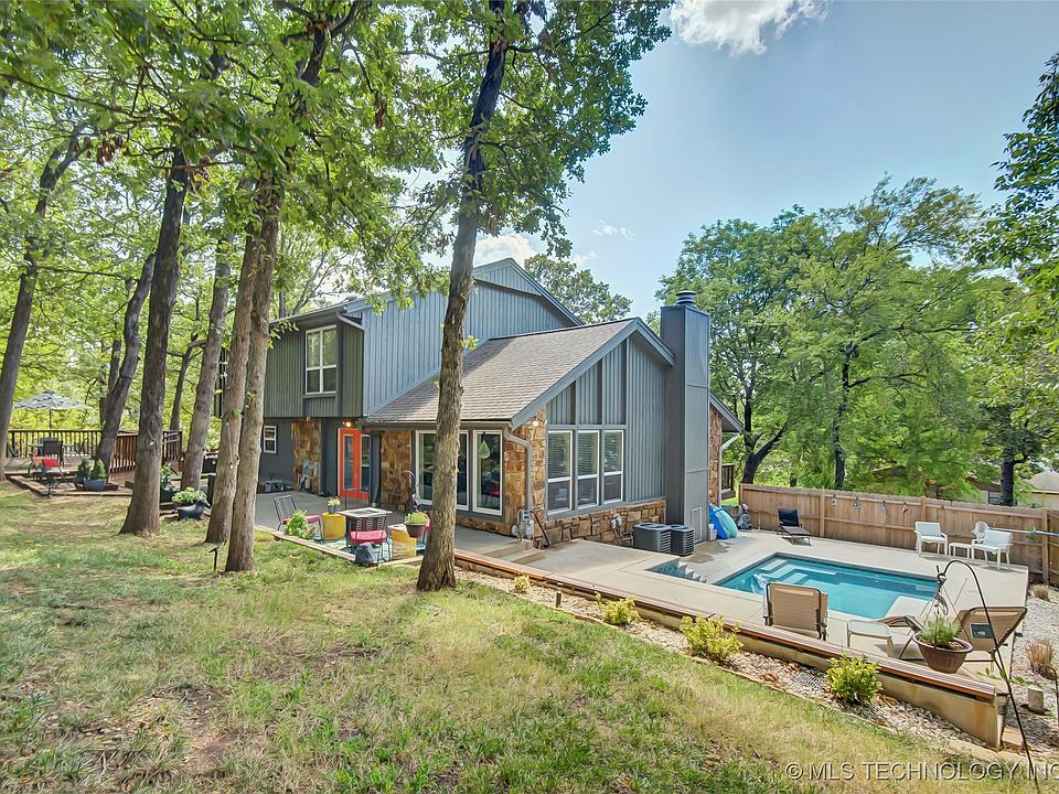 NEW ROOF installed September 2024! New plaster (9-2024) in salt water pool! Beautiful Woodridge. Presenting a stunning 3-bedroom, 2.5-bathroom house with a modern design and a newly built pool in 2021. This beautiful home features an open concept layout that provides a picturesque view of the landscaped backyard and a spacious wrap-around deck, perfect for outdoor dining. The chef's kitchen boasts elegant granite countertops, a breakfast nook, and double ovens. All bedrooms are located upstairs, with an updated primary bathroom. Additionally, there is a large game room above the garage. New windows installed downstairs. This house is an absolute must-see. Jenks Schools.