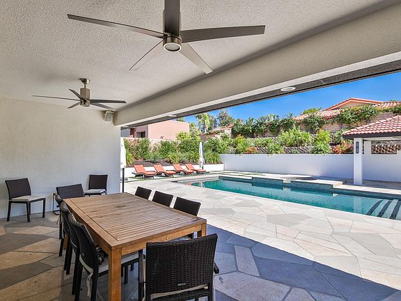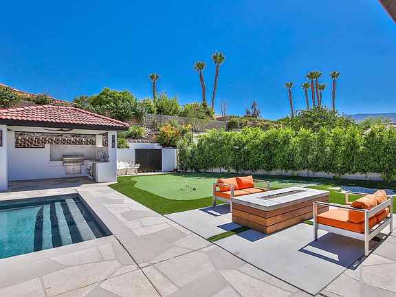 Located in a prime location just a mile south of 'El Paseo' in Palm Desert. The home is a brand new million-dollar remodel with exquisite modern finishes and brand-new top-of-line Wolf appliances. The open layout is perfect for social groups, the large sliding glass doors give the home an indoor/outdoor feel. The backyard, as you can see in pictures, has a pool, hot tub, putting green and outdoor grill! The home is private, behind a wall, hedges, and a front gate, in a very quiet neighborhood.