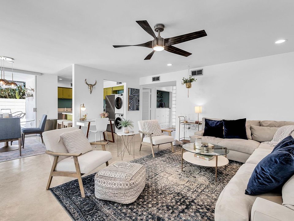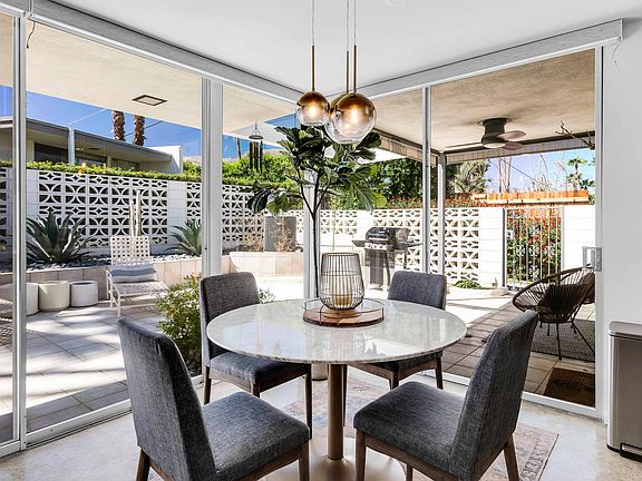 **ACCEPTING ANNUAL OR MONTHLY RENTALS** Welcome to this mid-century modern desert gem! This cozy oasis is located in the heart of it all, just one block from restaurants/shopping at El Paso. This Palm Desert oasis situated in the 9 unit mid-century complex, is a perfect retreat for those looking for a quiet serenity to kickback and unplug offering sweeping views of the mountains with unapparelled sunsets which you can enjoy from the large private patio. If you're looking to cool off - your steps away from the community pool! LIVING ROOM Cozy up on the couch and watch your favorite Netflix show or movie on our flat screen TV or just look out the framing windows at the beautiful scenery of cacti and desert oasis while you spend time with family and friends. If you're wanting more privacy the living room offers electric shades throughout. OUTDOOR SPACE Enjoy a candlelight dinner underneath the beautiful starry night skies or enjoy the perfect setting for a cup of coffee at sunrise or walk around the community outdoor area for a stroll. The space offers a patio area, perfect for outdoor dining. The property also features a propane grill available for the grill guru's among you. BEDS There are two ensuite bedrooms, one offers a queen-sized bed and the other has a California king, room-darkening shades, full-sized closet and ceiling fans. Offering fresh linens and blankets provided so you can get a great night's sleep. You'll have access to the patio / yard with sliding glass doors in each. KITCHEN Fully equipped kitchen with bosh appliances; fridge, stove & oven, Keurig & all of your basic necessities to cook up a hearty meal with access to a stackable washer / dryer. PETS We loves our furry friends, however no pets are allowed at this time. CLEANING SERVICES For extended guests we offer the option for an additional cleaning service ($150 fee) to ensure the homes continues to be maintained, offering you, a well kept home to continue to enjoy. GARAGE You'll have access to a shared garage (2x other owners) if you'd like to either store items ie; bike or park your vehicle. You'll also have a driveway that you can park an additional vehicle if needed. GUESTS You are not permitted to have any guests on the property beyond those included in your rental agreement unless you request and receive permission from us. That includes day guests and over night guests. SMOKING Smoking inside is not permitted and will be charged +$100 cleaning fee if rule are not followed. By renting this property, guest acknowledges that they have read, understand and accept the terms listed above for use of the pool, spa and guest policy. LOCATION 1 minute to El Paso 5 minutes Living Desert Zoo 10 minutes Indian Wells Tennis Garden 16 minutes Acrisure Arena 20 minutes Palm Springs Airport 20 minutes Camelot Theater 21 minutes Coachella & Stagecoach - Utilities capped at $200/per month - Flexible lease terms (30 day minimum stay) - Rental application and credit check through Zillow (for each person over 18 years old living on premises) o Credit Score must be 650+. o Monthly income must be at least 2.5 times the monthly rent. o Provide verifiable income. - No smoking allowed - First month rent at signing (deposit same as the rent)