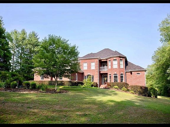 This lovely traditional brick estate awaits you with thirteen acres of land, an inspiring river, a timeless 22' foyer/keeping area, and a grand staircase to greet you as you step inside your home. As you enter, remarkable features include decorative columns, an inviting formal dining room, an ideal study/office space, a half bath, and the master suite located on the main floor. The master bedroom highlights natural lighting, sliding doors to access the back deck, and also a master bathroom. The grand master suite bathroom features a jetted tub, a walk-in shower, two separate vanities, two walk-in closets, and even heated tile flooring. Still, on the main floor, the open living and kitchen area is lit with natural light gleaming within the great wall of windows. The living room features approximately 26' raised ceilings, a fireplace, hardwood floors that spread throughout the home, and sliding doors to the back deck. The kitchen includes a breakfast area, lots granite countertop space, a large bar, maple cabinets throughout, under the cabinet lighting, and two separate pantries. The main floor laundry room features tile flooring, cabinets for extra storage, and a laundry sink. Walking up the grand staircase while overlooking the living room, the first bedroom on the right features carpeted flooring, a walk-in closet, and a full bathroom with tile flooring. This bedroom also features access to the bonus room with hardwood flooring, which is great for added storage, a playroom, or media room. From the bonus room, there is a guest bathroom with tiled flooring that connects the bonus room to the guest bedroom. The guest bedroom is a fabulous size and features hardwood flooring. On the way to the last bedroom, there are two french balcony doors on the right of the hall that lead out onto a balcony located above the front door. This generously sized bedroom features carpeted flooring, excellent windows, a full bathroom with tile flooring, and a walk-in closet. This beautiful home has many great qualities, including a three-car garage, a large back deck with a staircase leading to the backyard, and extra storage/workshop space located under the house.