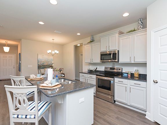 This is the highly desired Isabella plan Andrews Plantation. As you enter this home you will find luxury vinyl plank flooring throughout all thecommon areas, orange peel texture walls finished with quality paint. Added features include: designer lighting package, brushed nickel hardware on interiordoors, granite countertops in kitchen and baths. Appliances include a stove, microwave, dishwasher, refrigerator. and Kinetico water filtration system. The kitchen is open with a center island and looks out to a large great room with access to the covered backporch. The master suite is located at the back of the home has a nice bath with walk-in closet, separate shower and garden tub. This home is also equipped withSmart Home Technology for additional energy efficiency and security.
