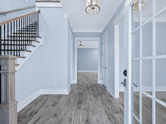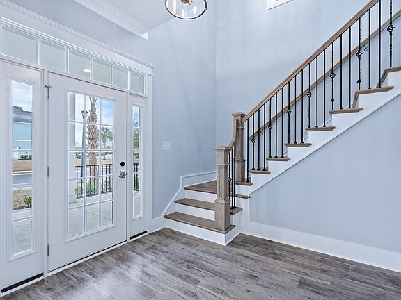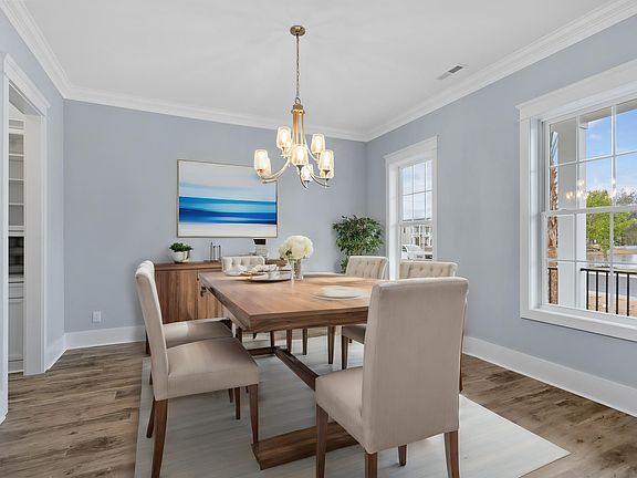 This gorgeous 4 bedroom, 4 full and 2 half-bath home is ready for its first owners. This Charleston style home is 2 story, with a large front porch and 2nd floor balcony. Walk through the front doors to find your large foyer with additional storage under the stairs. This home has a large formal dining room, butler pantry and large pantry making this home perfect for hosting. Primary is located on the first floor sporting an oversize shower and WIC. A luxury vinyl plank and tile home only, with 2 piece crown molding throughout. Upstairs you'll find a huge loft area to relax and enjoy the lake view directly across the street. 2 ensuites located on 2nd floor as well. The best part of this home is the large courtyard featuring a breezeway to your oversized rear entrance garage! Garage has a complete ensuite on 2nd floor. Perfect for hosting guests, a separate living area or mother-in-law suite. Don't miss the chance to see this!