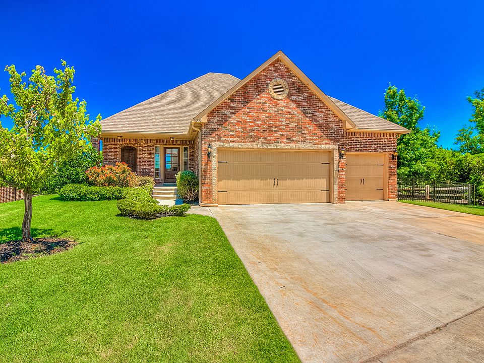 Surrounded by lush trees, ponds and a 10-mile walking trail, this 4-bedroom home rests on a quiet corner lot in the Lifestyle Community of Prairie Village at Coffee Creek. Gorgeous wood floors flow throughout the open floorplan with amazing views from the balcony overlooking the backyard. The kitchen is equipped with granite countertops, custom cabinets with tons of storage and stainless-steel appliances - not to mention a stunning wood beam feature in the ceiling. The separate laundry and HUGE master bedroom are on the main floor, while the bonus room, 3 bedrooms, and an additional bathroom are downstairs in the walk-out basement. (No need for a storm shelter!) Not only is this home crafted with high-end finishes, it has energy-efficient features like spray foam insulation and a tankless water heater. This Edmond oasis is just steps away from the community pool and clubhouse, and its within one mile of shopping, dining and top Edmond schools. Don't hesitate to come see this one!