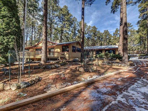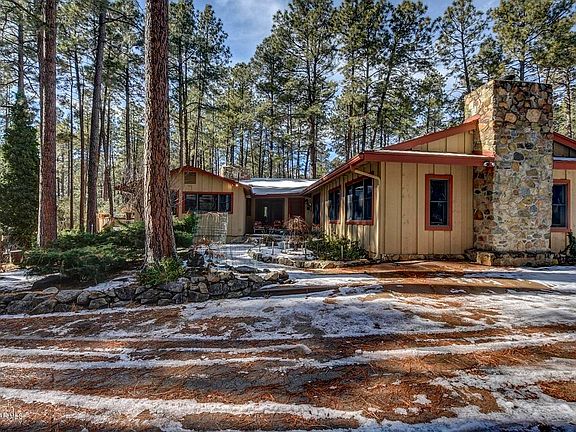 What an incredible opportunity to own this estate property in the forest! All paved roads to this private gated home just minutes from Downtown Prescott. This single level home is perfect for the family or for use as a get-a-way. The spacious floor-plan with upgraded kitchen, granite and custom appliances, open sitting room with fireplace and large heated Arizona room. Master bedroom has fine wood detail, private bath and large sauna room. There are two more bedrooms, a den with fireplace that includes a built in video system and wet-bar. You read it correctly, the garages are a 2 car attached, 4 car detached and a 2 car carport. Lastly, a sweet little guest house! Property is being sold in its current condition. There are some repairs and maintenance to bring the home to