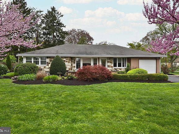 Abington Township - Desirable "Crosswicks" 3 bedroom 2 bath updated ranch with heated sunroom and beautifully landscaped grounds. A paver walkway and patio greet you as you enter. Spacious living room with gas fireplace and floor to ceiling front windows. The dining area with built-in buffet by the front windows leads to an updated eat-in kitchen with ceramic tile floor and backsplash, granite countertops, pleanty of cabinets, stainless appliances (dishwasher, refrigerator, gas range), disposal and double stainless sink. Laundry room with tub and closet. The sunroom has granite flooring with radiant heat and plenty of windows. The primary bedroom features a ceiling fan and open custom closet area plus a stylish ceramic tile primary bath with stall shower and seamless shower door. There is a 2nd bedroom with ceiling fan and closet and the 3rd bedroom/office opens to the living room but could easily be closed off with doors. One car attached garage. Pex water lines, replacement windows, updated electrical service, central air, gas hot air heat and much more. Located in the Award Winning Abington School District (McKinley Elementary) and close to Alverthorpe Park, the Abington Art Center, several train stations with easy access to Center City Philadelphia, and close toTrader Joe's , Whole Foods and quaint shops and restaurants in Jenkintown. This home is move-in ready!