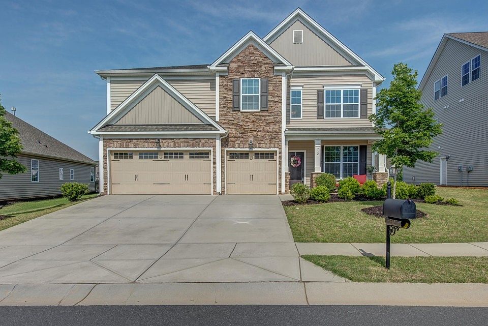 Lovely! Like New! Loaded Upgrades! This one is maxed out with upgrades...Porch w/ stone accents, triple garage, coffered ceiling, double ovens, huge kitchen with work island, granite throughout, tall height vanities, hardwoods on main, open floorplan, den/office/music room PLUS dining PLUS breakfast PLUS keeping room w/ fireplace PLUS built ins PLUS guest suite on the main, massive laundry off garage and drop zone. THEN there's the upstairs....Loft area for socializing/gaming/exercise etc. and a separate landing space to technology or office area, 3 more bedrooms. AND there's the MASTER - Massive space with trey ceilings, sitting area with fireplace AND exercise/sitting/office, Two walk in closets, separate shower, water closet, linen closet, double vanities with granite and upgraded oil rubbed bronze fixtures. THEN theres outside ! Huge fenced yard with upgraded brick paver patio and fire pit, space for trampoline and running around ! This is truly THE BEST of Tega Cay !