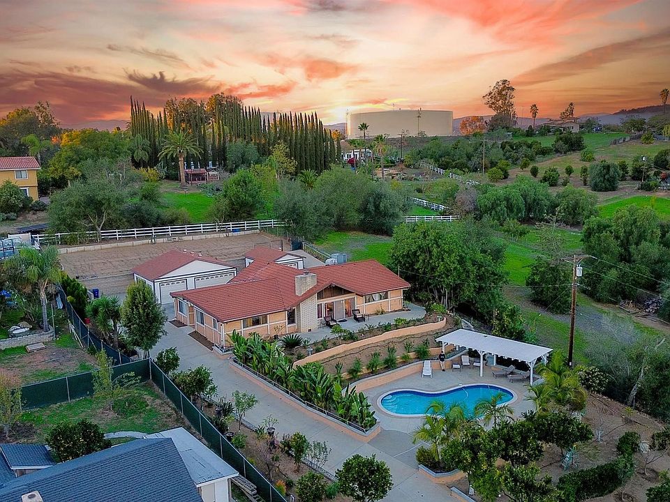 Welcome to 732 Hamilton Lane — your private Fallbrook retreat. This stunning single-level home offers 3 bedrooms and 3 bathrooms on 1.1 gated acres, designed for those who love both elegance and tranquility. Step inside to soaring vaulted ceilings and an open-concept layout that seamlessly connects the living, dining, and kitchen spaces—perfect for entertaining or relaxing with family. Large windows fill the home with natural light and capture sweeping views of the surrounding hills. The gourmet kitchen and spacious great room flow effortlessly to the outdoor living area, where a sparkling pool, covered patio, and lush landscaping create a true resort-style setting. Enjoy mature fruit trees, a four-car garage, and the peace of a fully private, gated property—all just minutes from Fallbrook’s charming village. Experience the best of Southern California living at 732 Hamilton Lane—where style, space, and serenity meet.