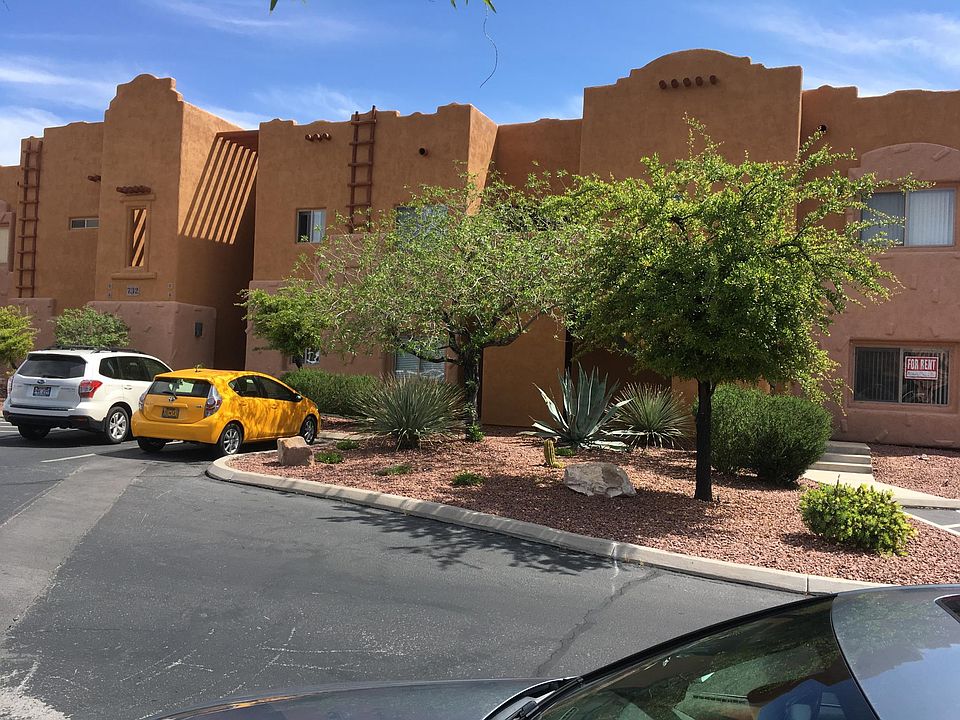 LARGE 1348 sq.ft. GROUND FLOOR CONDO at beautiful Enchantment. Open floor plan. 3 Fans. Glass top range. Side by side refrig/freezer. Water softener. Reverse osmosis. Washer/dryer included. Walk-in closets. Private courtyard entrance. 2 patios. Patio table and chairs Pool/hot tub. RV parking. No smoking, no pets, adult community. Unfurnished. Tenants responsible for electric, phone, cable, and internet. Owner pays HOA, water, sewer, and garbage.