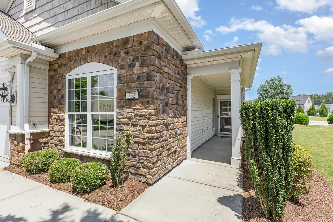 Big Price Drop! Light-filled 2-bedroom end unit with office in Carolina Preserve at Amberly. One-level living with screened porch, garage, all appliances included, and resort-style amenities just steps away.
