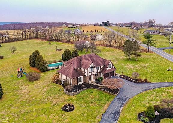 This beautiful 4 bedroom/4 bath Tudor home sits on 3.5 rural acres in Washington Township. The kitchen features a butcher block center island; tiled back splash; and breakfast nook with a vaulted pine ceiling and is centrally located to the living areas.On one side is the family room with a brick hearth propane fireplace and on the other side is the formal dining and living rooms.The Master bedroom has two walk-in closets, and adjoining bathroom featuring a mosaic tile floor, glass enclosed shower and gorgeous double vanity.3 more bedrooms; common sitting area; and bathroom with a soaking tub finish out the second floor.There are additionally 2 powder rooms with one in the garage for the pool.The laundry room has all the essentials with countertop, sink, and cabinets.Outside is a spacious, covered patio that overlooks the grounds and the in-ground pool.The 27X30 outbuilding is perfect for a workshop or storage. Located on a corner lot with easy access to major routes.