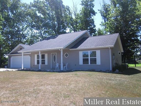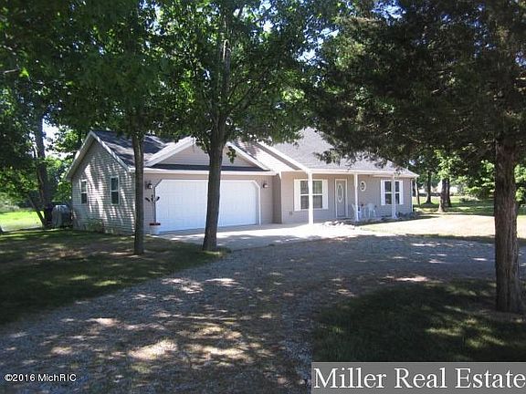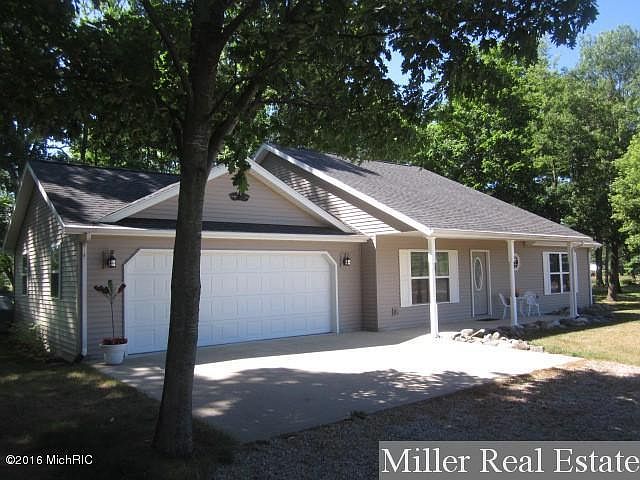 Pristine riverfront home on 3 acres with the golf course only a chip shot away. Built in 2010 and rarely used this home features cathedral ceilings, ceramic tile, wood stove and an attached two car garage. With a master suite overlooking the river the main floor is further accentuated with a convenient laundry. Add to this a charming patio, deck with sliders from the family room, a dock at water's edge and a convenient pole barn. All this and the hardly ever used appliances all stay.