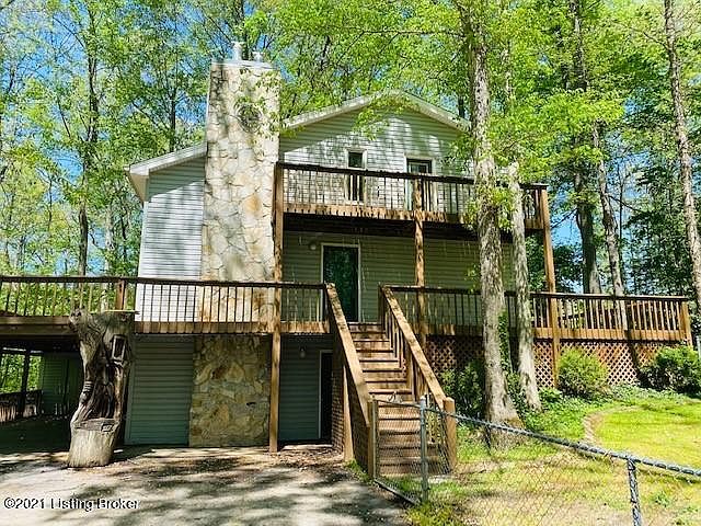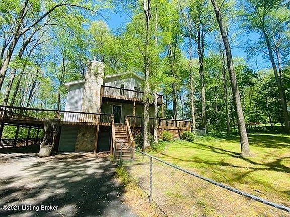 GATLINBURG LIKE FEEL RIGHT HERE AT HOME!! Come and tour this beautiful and well maintained 2 story home with entertainment decks galore situated on 1.37 private and wooded acres. The huge living room features wooded cathedral ceilings with beams, sliders out to the amazing decks and a floor to ceiling wood burning stone fireplace, beautiful hardwood flooring, large open kitchen to dining area, laundry room and half bath round out the main. Upstairs you will find the master bedroom, spare room and a full bath. The full, 90% finished walk-out-basement features a family room with a wood burning buck stove, bedroom, full bath and still plenty of room for storage. Outside is just amazing with fenced in area, carport, landscaping and a peacefully and tranquil setting! Take a tour today.