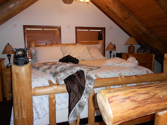 Charming log cabin on 5 acres! Open concept kitchen includes quartz countertops, stainless steel appliances and a wine cooler. Outside you will find a fire pit, gazebo and a detached 30x28 garage. Plenty of room for your guests with a bunk house and bath house! Very well maintained and the private setting is one of a kind. Skiing, sledding, hiking and horseback riding are right outside your door!