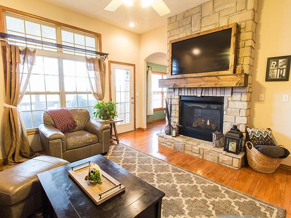 Beautiful finished walk-out basement near Nixa Community Center. Kitchen has large island, plus see-through stone fireplace between kitchen and great room. This is a great value, in quiet neighborhood near Community Center. All Hardwood and tile floors on the main level, including bedrooms.Large family room finished plus 4th bedroom and 3rd bath, plus 2 large unfinished areas and large covered deck with east exposure for shady back yard.