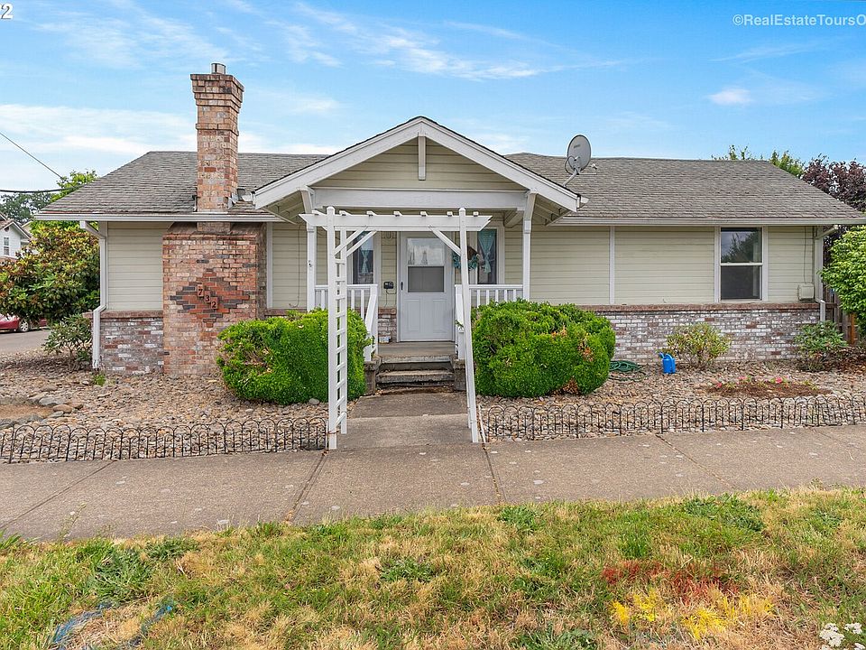 Cute little Bungalow on corner lot with oversized 2-car garage. Inviting living room with built in shelves and gas fireplace, 3 bedrooms & 2 baths. Updated kitchen with all new appliances(2021). Welcoming front porch and relaxing back deck. Raised beds, patio, and firepit complete fenced in backyard. New 2021 Ductless heat/ac. Great location within walking distance to downtown Newberg, George Fox, and Jacquith Park.