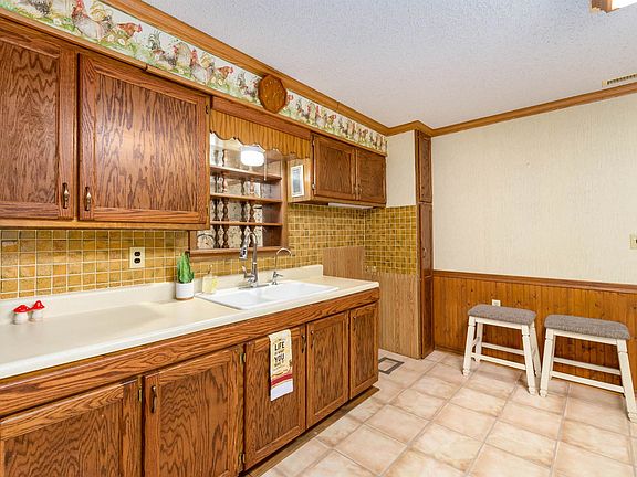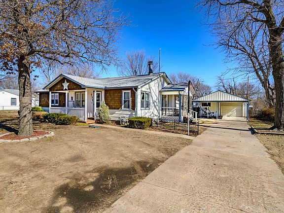 Welcome to this charming ranch-style home with a unique blend of comfort and functionality. Nestled on a spacious lot, this 4 bedroom 2 bathroom property offers a perfect combination of cozy living spaces and a practical oversized garage with an attached shop, catering to both the discerning homeowner and those with a penchant for hobbies or projects. Additional features include, a gas grill, screened in side porch, covered dog run, green house space, and a storm shelter. A standout feature of this property is the expansive garage with an attached workshop. The oversized dimensions provide ample space for multiple vehicles, storage, and the pursuit of hobbies or DIY projects. Outside of the garage and shop there are two storage sheds as well. One bedroom is located in the detached garage, great for guests visiting or even multi-generational families that may utilize the area. New roof and water heater installed in 2022.