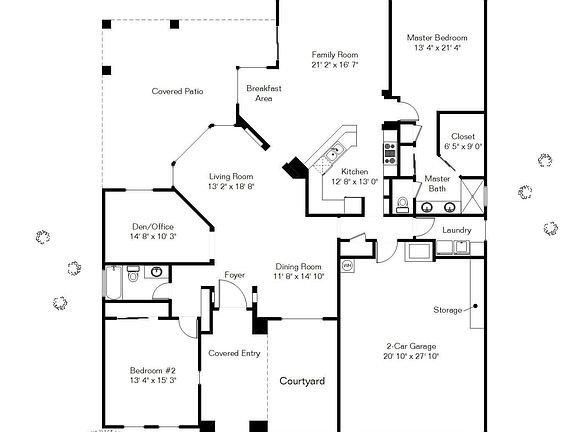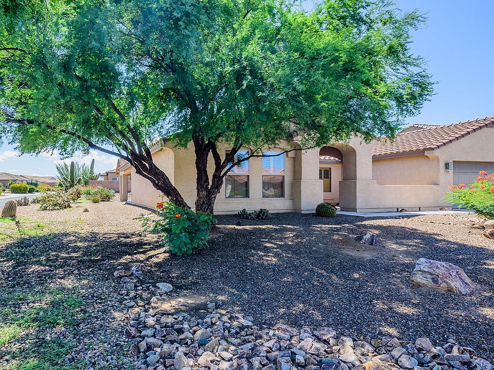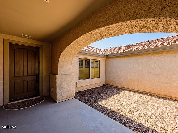 Enjoy the natural beauty of this 2BR 2BA corner lot home in Robson's bustling Quail Creek neighborhood. Lovely Southwest Contemporary style has a comfortable living space with high ceilings, accentuated by lots of natural light coming in through huge windows in the center of the house. Open concept architecture with large den that can be converted into a spacious office. Solid cherry cabinetry and diagonal 20'' tile throughout. Enlarged covered back porch and newly painted exterior enlightens this Silverton floor plan. Your favorite amenities are also included with a gas fireplace, quartz kitchen countertops, gas range, microwave, washer/dryer in laundry waiting for you to move in! Quail Creek offers two clubhouses, with a third under construction, as well as golf, exercise, and more.