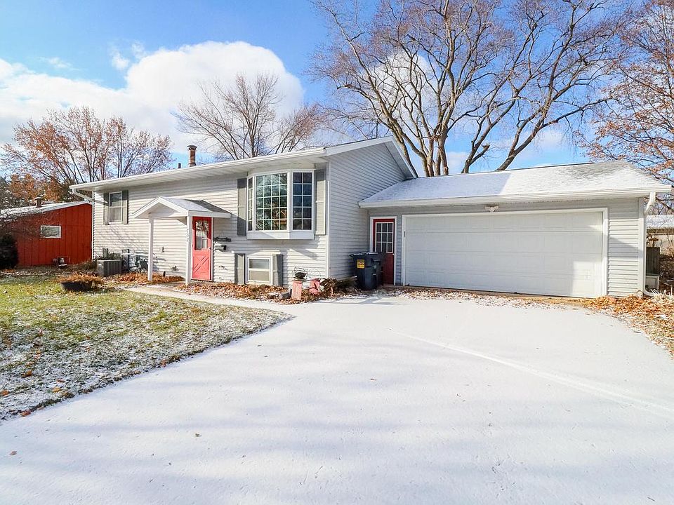 This home has the spaces for you! Living room on main level and near the kitchen, or the family room with a gas fireplace in the lower level, or a covered deck right off the kitchen, or go below to a patio and the fenced-in yard for all your outdoor needs. Picture the landscaping around the home and fences. Plus a shed and area for vegetables. There are 4 bedrooms, 2 baths, and a 2 car garage. The lower level bedrooms could be an office or storage or whatever you need! Close to school, the Aquatic Center, parks, ball fields, golf, Barney Center, or hop on the bike trail. Plan your showing!