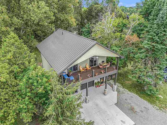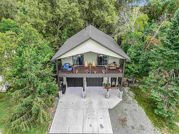 Discover this newly built home, ideally located in town, offering the convenience of walking to the public boat launch and nearby shops and restaurants. The property features a spacious (34' x 36') pull-through garage with 11-foot doors, providing ample room for a boat or RV. The high efficiency boiler, provides in-floor heat in the garage and keeps energy costs down. With electrical service for two welders and 6" slab prepped for a car lift, this garage is perfect for the skilled handyman. Within the lower level there is also a full bathroom, office nook and ample built in storage. Upstairs, you'll find two sizable bedrooms and two full baths, all within a well designed layout. The kitchen is highlighted by stunning quartz countertops that must be seen to appreciate. Relax on the 340-square-foot covered porch, adding to the appeal of this perfect blend of style and functionality. Additionally The home boasts a low-maintenance exterior, allowing you to spend more time enjoying your favorite activities rather than upkeep. Perfect for a relaxed and active lifestyle in the heart of northern Michigan. Within the fenced in back yard, there is full hook-up for an RV allowing for additional friends and family to visit. Speaking of backyard, you'll be blessed with handfuls of morel mushrooms every spring Don't miss your chance to experience easy living in the heart of Northern Michigan — schedule your showing before the summer rush