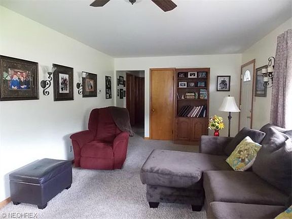 Great ranch with tons of updates including carpet installed 2014, glass block basement windows, central air in 2013 w/ 10 year warranty, 2014 insulated Attic, HWT 2009, kitchen w/ ceramic floors, sump pump, 2013 refinished bathroom cabinets and new fixtures. Hardwood floors under living room and bedroom carpeting. Finished rec room with storage. Updated kitchen with oak cabinets and covered back patio overlooking fenced backyard!2 car detached garage.