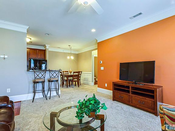 This lovely penthouse condo is filled with sunshine & airy treetop views. The open floorplan amplifies the spacious rooms offering easy furniture placement. The large family room has access to a shady, covered balcony-the perfect spot for relaxing. Enjoy 2 closets in the primary suite which includes a tiled bath w/large vanity & laundry closet. The refrigerator (2020) & washer/dryer (2017) remain/HVAC is 4 years old. Great W. Cary location near RTP, RDU, I-540 & shopping. All furnishings convey!