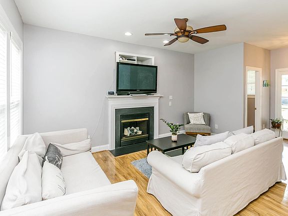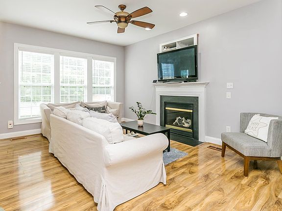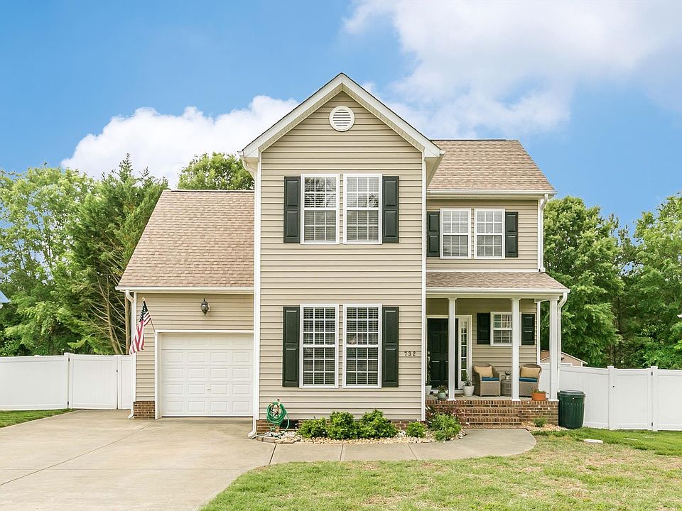 Location! Location! Walk to Downtown Wake Forest from this home. Features an open family rm. kitchen & breakfast room. Downstairs living rm/library and 1/2 bath. Kitchen has white cabinets, center island, granite counters & pantry. 9' ceilings. Upstairs has three bedrms, and a bonus rm/office w/ walk in stg. New carpet upstairs 2023. Roof 2020. Upstairs furnace & air handler 2018. New 2022 - $9,000 fence for back yard. Front porch, deck, & one car garage. Master bedroom has trey ceiling & bath has jetted tub and sep. shower. Gas logs. Extra parking pad. This neighborhood has entry to Dunn/Smith Greenway. Refrigerator, washer, dryer & TV in living room convey.