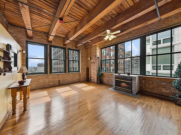 Historic brick and timber loft building in near-South Loop with indoor parking, within walking distance to shopping and Loop office is for sale. Southwest corner unit with plenty of bright, natural light This prime unit within this historic Printers Row building features unique 14-foot ceilings with Georgia red pine timber beams and exposed brick throughout. This semi furnished, 1,075 square foot, one bedroom/bath unit has an abundance of natural light due to its prime SW corner location. The unit also features an in-unit washer/dryer and a gas fireplace. This historic building is smoke-free and has had extensive renovations over the past three years including new roof, updated elevator system and renovated lobby. Included with indoor parking space is bicycle storage and unit storage locker availability. Near to all forms of public transportation and highway access. Although the building has a low tenant to owner user residency ratio rate, the building remains investment and pet friendly while enjoying annually balanced budgets. Low monthly assessments as compared to other buildings along with on-premise management, overnight security and private parking garage provide peace of mind."