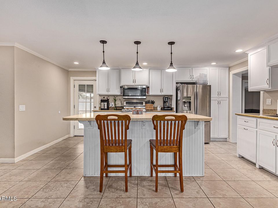 Charming 5-bedroom residence with RV parking in Mesa is now on the market! Discover an inviting interior showcasing tile flooring, neutral palette throughout, and recessed lighting. You'll love cooking your favorite recipes in the fabulous eat-in kitchen offering a plethora of white cabinets with crown moulding, stainless steel appliances, granite counters, back patio access, and a center island complete with a breakfast bar. Relax after a busy day in the primary bedroom featuring gleaming wood-look floor, a private bathroom, a walk-in closet, and private access to the back patio. The spacious backyard including a full-length covered patio is the perfect spot for hosting fun gatherings! Home has many ADA features including roll in showers. This opportunity won't last long.
