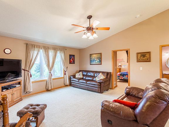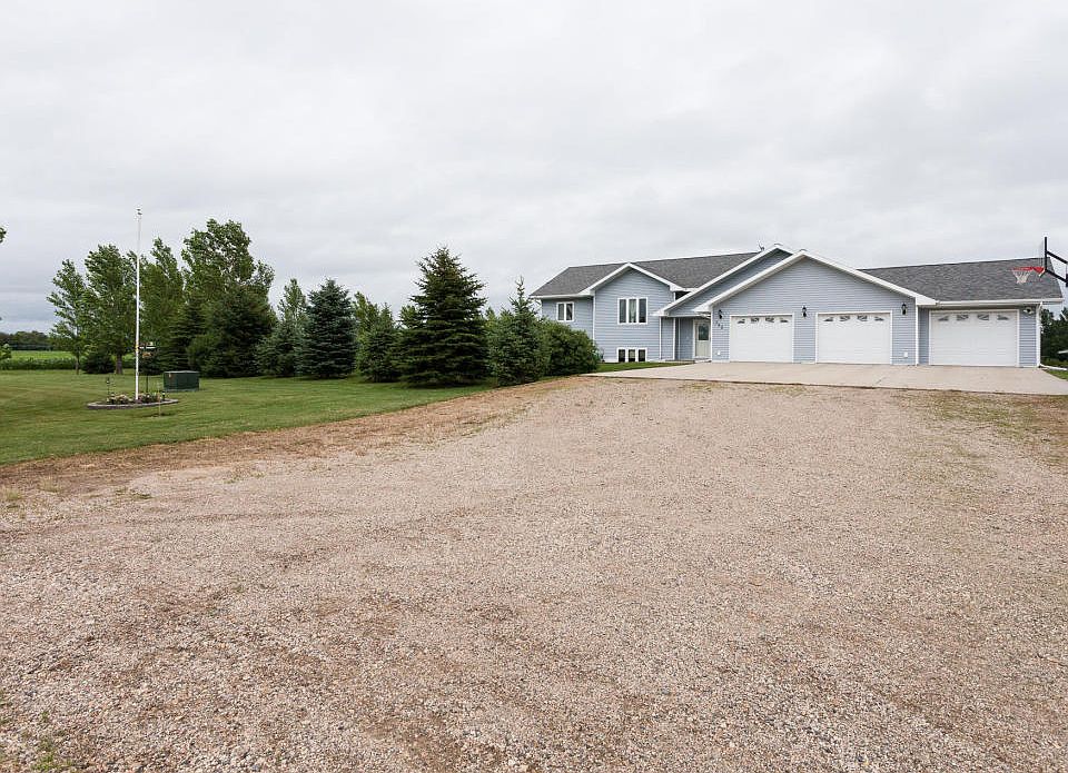 Enjoy country living at its finest in this 4 bedroom, 3 bath home. 2.5 acre site with an abundance of trees just 2 miles south of the GF Country Club. Open floor plan with 16x20 deck off the dining room, master suite with walk in closet, large family room in lower level, attached triple insulated garage and an extra detached garage with heat. Newer windows and geothermal heat.