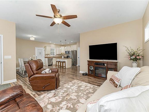 MAZING LOCATION, PRIVATE LOT, feels like an oasis, stick built home, 3 bedrooms, 2 full baths, open floor plan with an open kitchen featuring white cabinetry, island, side door to patio/deck, dining room, and great room all on one level! Owner's suite with walk-in closet, private bath with his and her vanities. Easy maintenance with cedar accent vinyl exterior, extended double pad driveway, newer shed, and cleared lot. Don't miss out on this 4-year-old home in excellent condition.