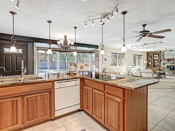 Beautiful Updated Light Bright Single Story, Brick Pitched, Open floorplan HOME! Full Backyard access- Parking for your Toys! 4 bedroom - 3 bedrooms with walk-in closets, kitchen and spacious main living area are open to each other. Cook's Bright kitchen with granite countertops, lots of cherry cabinets, is open to breakfast area with wall of windows and Family Room with cozy fireplace and built-ins. Nice laundry room with storage. Front living area is open to Dining area. Updated baths. Primary suite with updated bath and large walk-in closet. The backyard with grass, large trees and storage will be the place for a dream summer. Come see the pride of ownership and fall in love with this home. In Four Hills with Golf Course and Country Club.