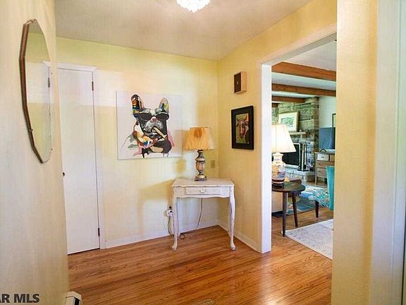 Lovely ranch home in the Greentree neighborhood on a cul-de-sac street with lovely mature trees. Enter into the open living/dining room with original stone fireplace and plenty of natural light. Exposed wood beam ceiling, large picture window, and hardwood floors throughout add to the charm of this home. Large kitchen with light cabinetry and enclosed sunroom opening to the backyard. Enjoy the patio and large, fenced in yard. Back inside, three good sized bedrooms and 2 bathrooms complete the home. An attached garage and full, unfinished basement gives plenty of room for storage or the potential to finish the basement for even more living space!