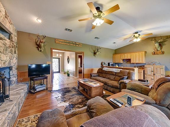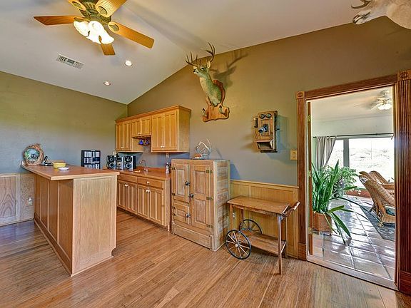 If you are looking for a 100+ acre ranch with end of the road privacy for getting away from it all, family time and/or hunting, this is it! Custom built home has fir studs, extra insulation, custom high efficiency windows, sealed Saltillo tile & bamboo wood throughout with high ceilings, exposed cedar beams, and over-sized doors & hallways. Kitchen has custom cabinets, commercial grade granite countertops, and a South Texas mesquite island. Unique features include a custom iron-work front door, pass-through fireplace with a mantle dated from the 1800's, wet bar, and jetted master tub. Extras include a huge attached garage with a 3rd full bath, 1bd/1ba Guest House on its own septic and 10'X16' covered porch, 30'X60' steel construction/concrete slab barn with attached 12'X60' open-end enclosure, and a 12'X38' RV/Carport. Well is 336' deep with casing top to bottom! All Improvements are original owner & property has been well maintained. 108.6 acres are perimeter fenced with two pastures (25 ac. & 20 ac.) cross-fenced; includes water troughs, horse corral, holding pen & loading chute. 30minutes to Junction or Harper and 50 minutes to Fredericksburg or Kerrville.