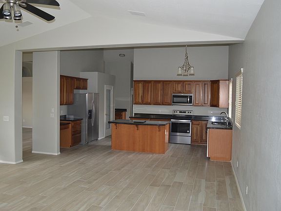 Spectacular single level home with stainless steel appliances, pebble tec pool, Cherry cabinets, Granite countertops, wood look tile floors, walk in pantry, former model and it shows. The master has a huge walk in closet, separate tub and shower, and a great view of the pool. Designer Carpet, paint, tile and fixtures throughout. This is a great home and has great resort style landscape.