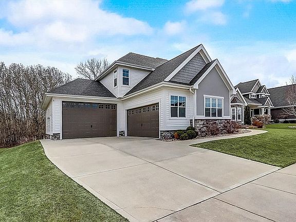 ABSOLUTELY STUNNING Custom Built 2-Story Home w/5 Bedrooms, 1st Floor Office, 3.5 Baths, Screen Porch w/Gas Fireplace + 4.5 CAR HEATED GARAGE w/10' Door, Epoxy Floor, Hot/Cold Water & 2 Drains! GORGEOUS Kitchen w/Quartz Counters, Large Work Island, White Cabinets w/Under Cab Lighting, Tile Backsplash, Double Oven, Mini Bar + Dinette Area opening to the Great Rm w/Beamed Ceilings & Stone Gas Fireplace! Huge Master Suite w/Cathedral Ceilings, 2 Walk-in Closets + Private Full Bath w/Tiled Walk-in Shower & 2 Showerheads! Humongous Walkout L/L Features Family Rm w/Stone Gas Fireplace, Wet Bar, Exercise Rm, 5th Bedroom + Full Bath! All 5 Bedrooms Have Walk-in Closets! Hand-Scraped Maple Flooring! Maintenance Free Deck w/Natural Gas Line! Mud Room w/Lockers! 6-Panel Doors! 3-Zone HVAC!