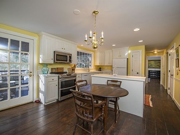 This four bedroom, three bath Gambrel is sun filled with an inviting layout. The beautiful brick floored mudroom is perfect for all seasons. Walk into the bright kitchen and wander into either living room space or step out to the screened in porch and hear the Whitman Brook babbling. Whether you want to sit in front of your propane stove or build your own fire, the home offers either choice. Enjoy the master bedroom suite on the first floor, with a walk in closet and soaking tub. Three bedrooms upstairs or make one into a library. Studio space with private exterior entryway and direct access from the master bedroom. Level yard with beautiful landscaped gardens. The two car garage is a plus! The best part is you can take a short walk or golf cart ride to all the amenities Quechee Lakes has to offer.