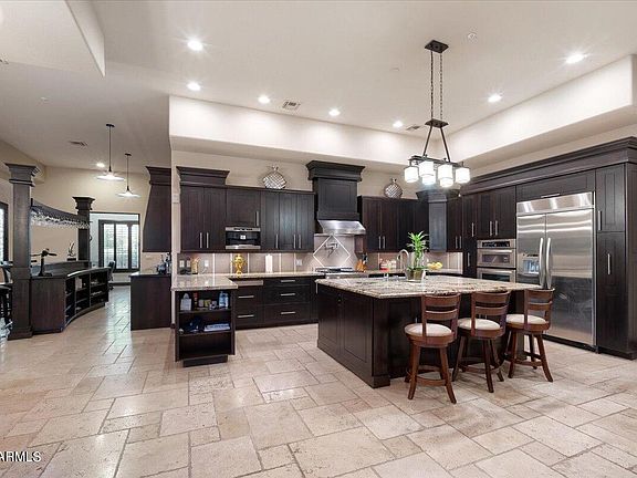 Want to have your cake AND eat it too? Look no further than this STUNNING property where you can appreciate privacy in your own luxurious home while still having enough space (as well as the perfect setup!) for multi-generational living, an in-home business or just to entertain and host ALL your friends and family! NO HOA. The unique paver circle drive and impressive double doors invite you into your new home where you're immediately welcomed by an impressive foyer w/tray ceiling and travertine floors. The expansive formal living room flows right into your SHOW-STOPPING gourmet kitchen which is an entertainer's DREAM! This is the house where EVERYBODY will want to gather as guests can choose to sit at the custom bar (complete w/wine cooler) or stand near the oversized island to enjoy your world-famous appetizer spread. After dinner, relax by the fire in your family room (w/built-in shelving), put on a movie in the home theater, or bring everyone outside to showcase the TRUE good life! This jaw-dropping, resort-like .80 acre lot boasts an expansive covered patio, pebble-tech pool w/multiple waterfall features, built-in BBQ/bar, and even a guest house (which is in ADDITION to the home's attached 3 BR guest quarters with private entry). ALL of this and just minutes away from the world-class shopping, resorts, dining, and golf courses that Scottsdale is famous for. This unique property truly has it all! See for yourself, today!