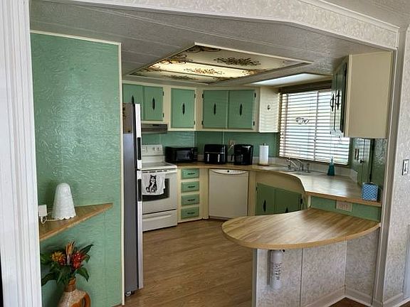 This two bedroom two bath home is placed on a quiet street in the age qualify community of Colony Cove. This home has a metal roof and a AC unit installed less than four years ago . 1,144 square-foot living indoor living space under AC. New flooring and sub flooring throughout the dining room , kitchen and hallway area was recently installed. The home has a circular kitchen, giving plenty of space for storage. Off of a living room area is a screen side lanai to enjoy your morning coffee, or a cup of tea. The guest bedroom is generous and size with a walk-in closet, master bedroom as well with a walk-in closet and step in the shower in master bath. The carport area is large enough for two cars storage shed that houses the washer and dryer and utility sink. There's an extra shed in the back of the house for your tools and beach gear. This home is handicap accessible with removable ramp. Lot rent for this home $1,088.19 well below the cost of an apartment per month. Included in the lot rent: Water, sewer, trash, property tax, lawn mowing, weed eating, edging, and all the fabulous amenities Colony Cove has to offer. Located along Florida's Gulf Coast, in highly sought-after Manatee County, Colony Cove is an age-qualified, resort-style mobile home community with waterfront views, premier new homes and amenities designed around an active lifestyle. Much more than a place to live, Colony Cove and The Oaks at Colony Cove is the perfect place to stay active, make long-lasting friendships and enjoy the life you deserve. Residents enjoy a private marina with dry and wet boat slips, five spacious clubhouses, six heated swimming pools, pickle-ball and tennis courts, two fitness centers, two dog parks, billiards and much more! Love the outdoors? Colony Cove is in the quaint town of Ellenton, just outside the Bradenton and Sarasota metro area. Sarasota is the gateway to miles of beaches with fine sand and shallow waters, like Lido Beach and Siesta Key Beach. Enjoy sunbathing, fishing, boating, or site seeing from some of the nation's most beautiful beaches on Florida's Suncoast. The area is also known for diverse dining, enriching arts and culture, and premium shopping districts. It hosts several cultural institutes, most famously, the Ringling Museum of Art, which showcases old masters and modern art. If you're looking for a comfortable, friendly atmosphere, with easy access to everything that makes Manatee County one of Florida's most vibrant areas, Colony Cove is the perfect place to call home. All listing information is deemed reliable but not guaranteed and should be independently verified through personal inspection by appropriate professionals. Integrity Mobile Home Sales cannot guarantee or warrant the accuracy of this information, measurements, or condition of any property. Measurements are approximate. Lot rent is subject to change!