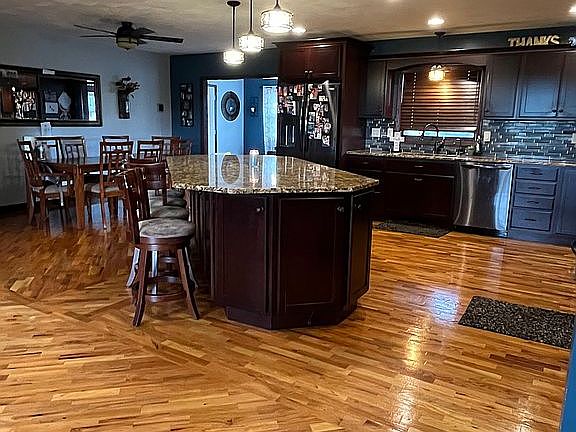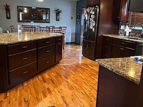 This country tri-level home with a basement (quad level) is settled just outside of city limits. The main floor features an open concept layout that includes a large remodeled kitchen, living room, and dining room. The kitchen has all granite countertops, a large island, custom built cabinets, and a large pantry. Just off the kitchen to one side is a fully remodeled bathroom and laundry room. On another side you will find a sunroom that overlooks the backyard. Go out one door of the sunroom and you come to the hot tub, and out the other you come to the new stamped concrete patio. From the main floor living room you will find stairs taking you to the upper level. This features 3 spacious Bedrooms (featured in upcoming pictures), remodeled bathroom with tub/shower combination, and linen closet. The master bedroom has a small balcony off of it that overlooks the skyline at sunset. Also from the main living room you will find stairs taking you to the lower level. This level is fully carpeted with two spacious living areas. It also has an electric fire place, large closet and a half bath. The basement underneath the main level is half finished and half unfinished. The finished side has an egress window to allow utilization of this space for a bedroom. This room also leads to the unfinished mechanical side of the basement. The unfinished side can be used for extra storage/space, workout equipment, etc. The extra-deep garage is 2.5 bays and features an epoxy floor, a natural gas heater, and 9 foot basketball hoop. This makes it a perfect kid play area, storage overflow, or bonus room for hosting. An additional 1 car detached garage provides additional storage and/or parking. The outdoor patio has an upper level and lower level. The upper level is on a foundation which provides the option for converting to an all seasons room in the future. The lower patio level has a natural gas fed firepit and a bar. The epoxy coated bar contains a natural gas fire insert for easy entertaining. The yard and layout of this property lends to beautiful sunrises from the sunroom, and relaxing sunsets in the evening from the large picture window in the front of the house. The furnace, A/C, and HW heater were all replaced with high efficiency models in 2016. The house and shed roofs were replaced in 2016. The stamped concrete patio, firepit, and outdoor bar were added in 2020. The epoxy garage floor was also added in 2020. **Still plan to post pictures of the 3 large bedrooms upstairs, refinished upstairs bathroom, unfinished portion of basement, 2.5 bay garage with epoxy floor and detached building.
