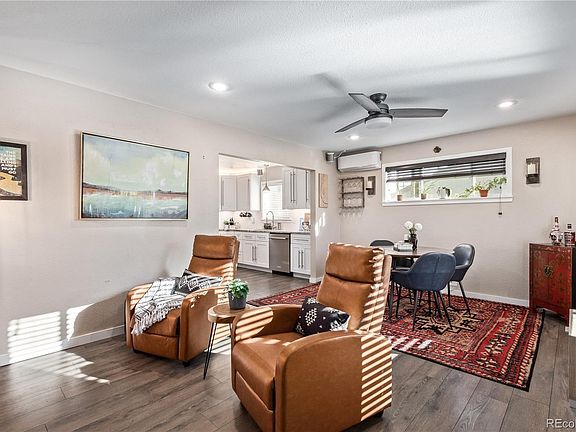 Beautiful 4 bed, 2 bath home with amazing backyard in north Denver! As you enter the home you are greeted with abundant natural light from the many windows and a modern open floor plan lined with wood laminate. The open kitchen boasts stainless steel appliances, granite countertops and ample cabinet storage. The main floor also has a full bathroom, a spacious primary bedroom, and another bedroom, currently configured as a home office. Heading down to the fully finished lower level you enter a large rec space with a decorative wooden accent wall. The lower level also has 2 more bedrooms, full bathroom, and storage/laundry room. The backyard is perfect for entertaining with a patio, firepit, pergola and low maintenance landscaping. The detached oversized garage has endless possibilities and could easily be converted into a hang out spot. Located in a quiet neighborhood with easy access to i-25 and 270, come discover your new home today!