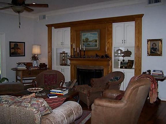 AD#409 - STATELY RIVERFRONT HOME ON BEAUTIFUL 2.1 AC LOT. HUGE PECAN TREES. FABULOUS VIEWS. WOOD FLOORS IN LIVING-DINING ROOM. GRANITE COUNTER TOPS IN KITCHEN, BREAKFAST BAR. TONS OF STORAGE. 2 LIVING AREAS. 4 BEDROOMS + STUDY OR 5TH BEDROOM. LARGE DECK UPSTAIRS OVERLOOKING RIVER. 3 CAR GARAGE. 3 ATTIC AREAS FOR STORAGE. 1,000 SELLING BONUS!