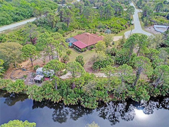 Looking for something unique? This waterfront home has saltwater access, heated saltwater pool and is on an oversized lot on a quiet and private cul-de-sac! Outstanding amenities are found here starting with the huge extended and screened lanai that features a pool and custom built outdoor kitchen fully equipped with a wood smoker, built in grill, refrigerator, sink, lots of counter space, a bar and plenty of room for a pool table or whatever your outdoor living dream is! This home was custom built in 2012 by SW FL Dream Builders and features open concept living with a 3 bedroom split plan and den/bonus room, long lasting tile roof and oversized 2 car garage. This cul-de-sac lot is almost 3/4 of an acre and has fruit trees and a very spacious backyard with firepit sitting area overlooking the water, which is accessible with a small boat to the Myakka River & Charlotte Harbor. The master bedroom, dinette and living room have direct access to the screened outdoor living area. The master suite features a volume tray ceiling, walk in closet and a private bath with spacious tiled walk in shower. The kitchen is open to the living room and has custom cabinetry, a closet pantry and an island in the center with a breakfast bar. The oversized two car garage has plenty of room for all your toys and tools and has two garage doors and openers. This home is in a great location near several Gulf coast beaches, golf courses, restaurants, shopping and of course lots of boating! We look forward to welcoming you home!
