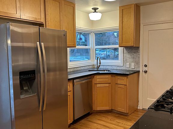 Lovingly maintained. Newer windows. Fresh paint. Gleaming hardwood floors. Tiled bathroom floors. Stainless steel appliances. Washer and dryer in unit. Does have A/C. This is the main level unit, only. Two beds/1 bath. Does include front lawn for gardening AND a parking space in front of unit. Utilities & WiFi are included in rent. Walking distance to Hillsdale and Multnomah Village. Few parks nearby. Bus stop is a few blocks away. Easy commute to freeway. Owners pay for utilities. Security deposit is required at signing. NO SMOKING in or around property. There is one parking spot right in front of the house.